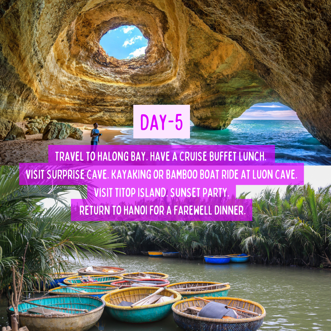 - Transfer to the airport in Danang for your evening flight to Hanoi (domestic flight included).