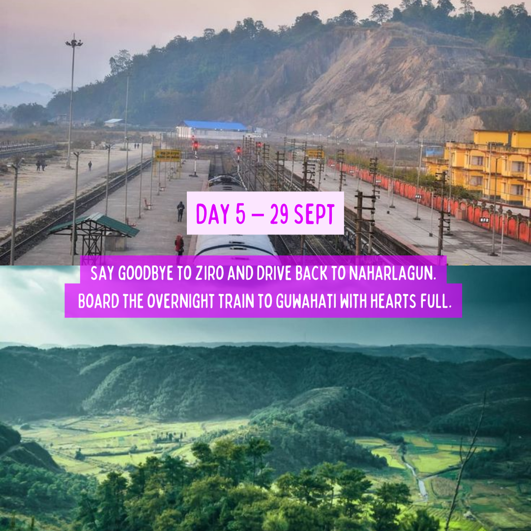 - Board the overnight train to Naharlagun (nearest railhead to Ziro).