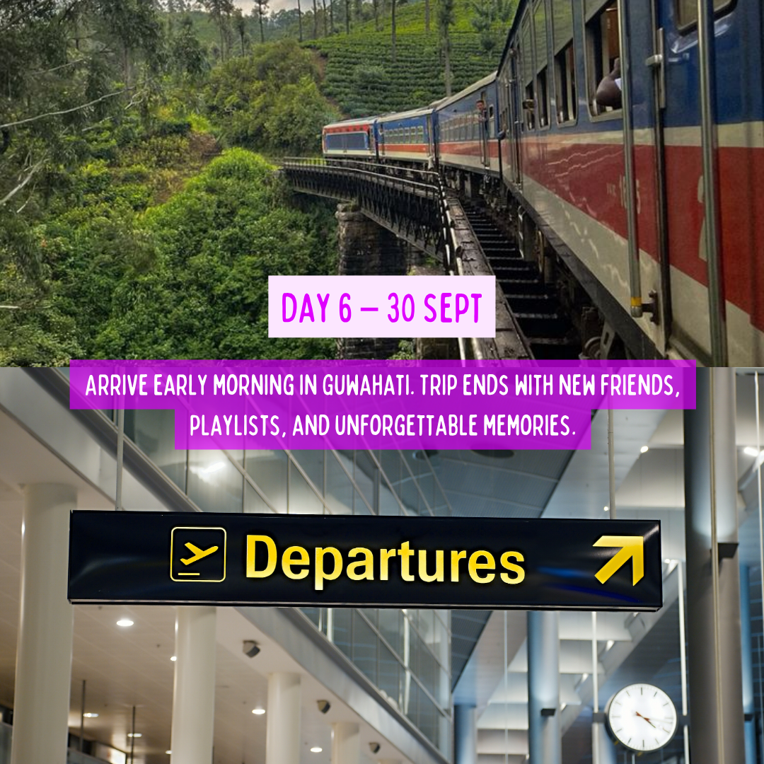 Board the overnight train back to Guwahati, hearts full and playlists updated.
