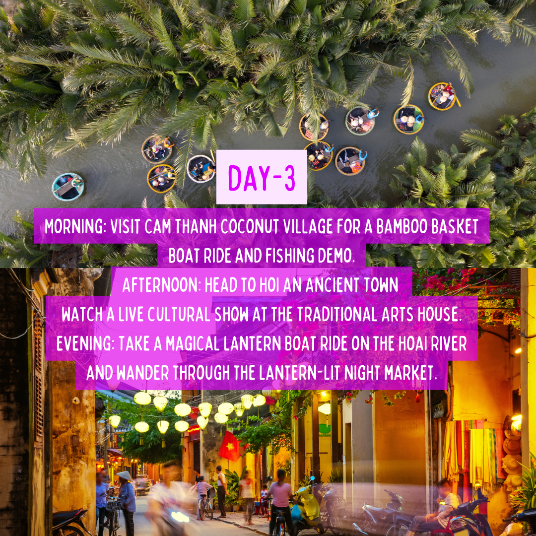Evening: Enjoy a magical Lantern Boat Ride on the Hoai River and explore the lantern-lit night market.