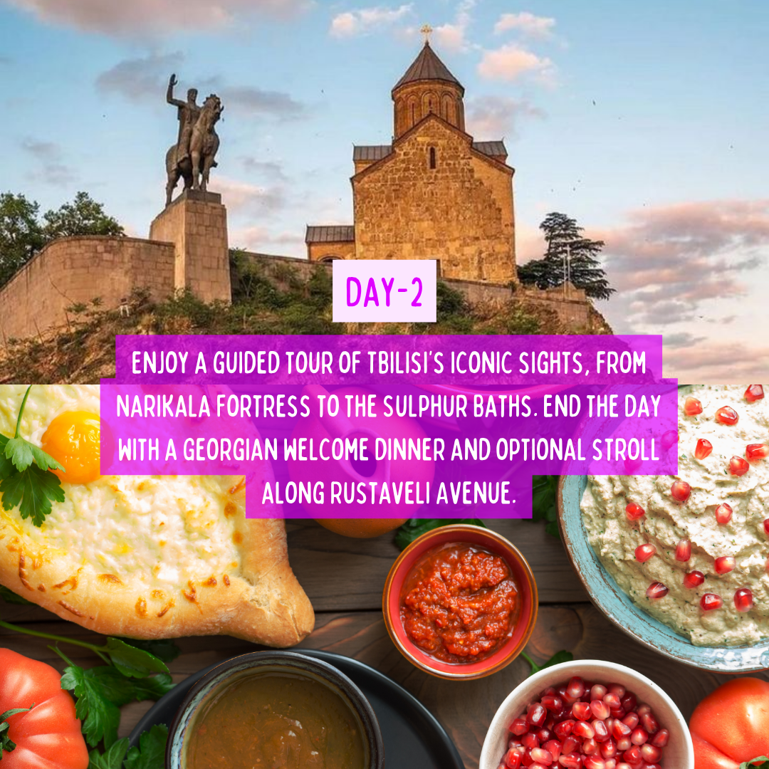 Evening: Cultural Meet & Greet Dinner at a traditional Georgian restaurant, where you’ll experience a supra (feast).
