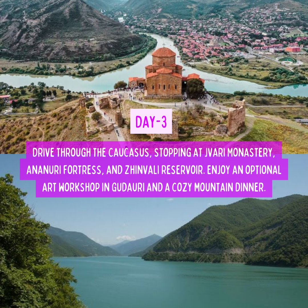 - Scenic return drive to Tbilisi, with optional brief stops for photography.