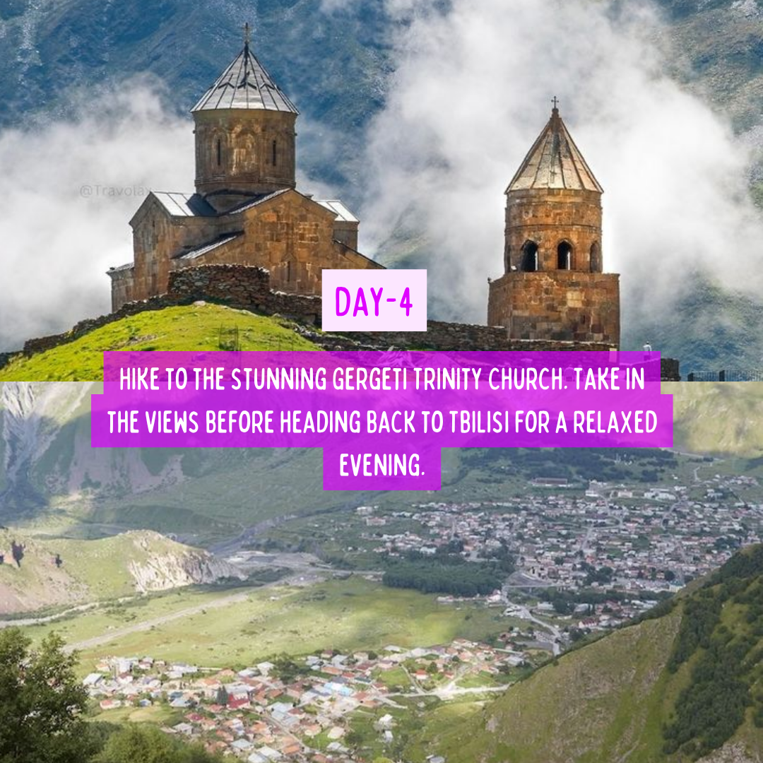 - Trinity Church: Go on a hike to Gergeti Trinity Church, a stunning 14th-century monastery perched at 2,170m, offering breathtaking views of Mount Kazbegi.