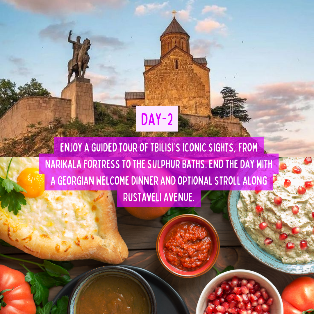 - Enjoy breakfast at the hotel before a guided tour of Tbilisi: