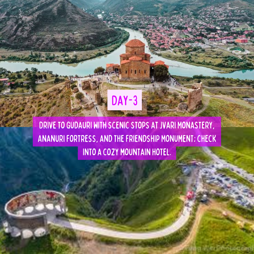 - Ananuri Fortress: Historic fortress with views of Zhinvali Reservoir.