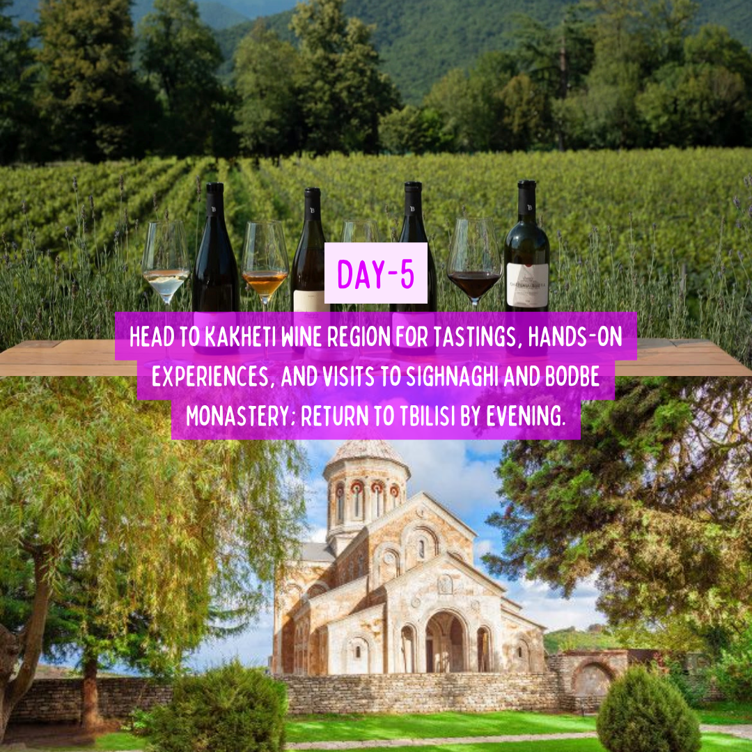 - Start the day with an early breakfast before departing for Kakheti, Georgia’s renowned wine region, celebrated for its traditional winemaking and scenic landscapes.