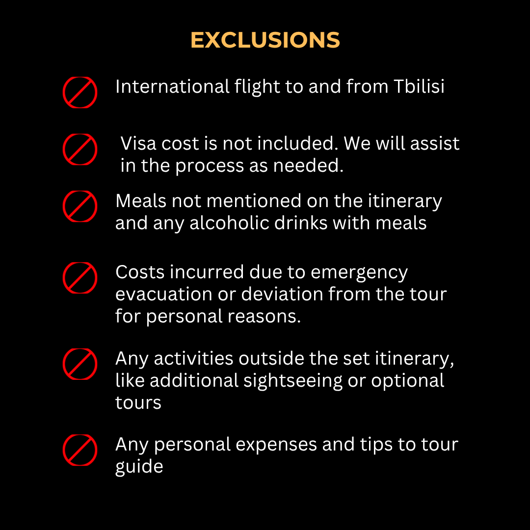 - End the day with a private transfer to Tbilisi International Airport for your departure.