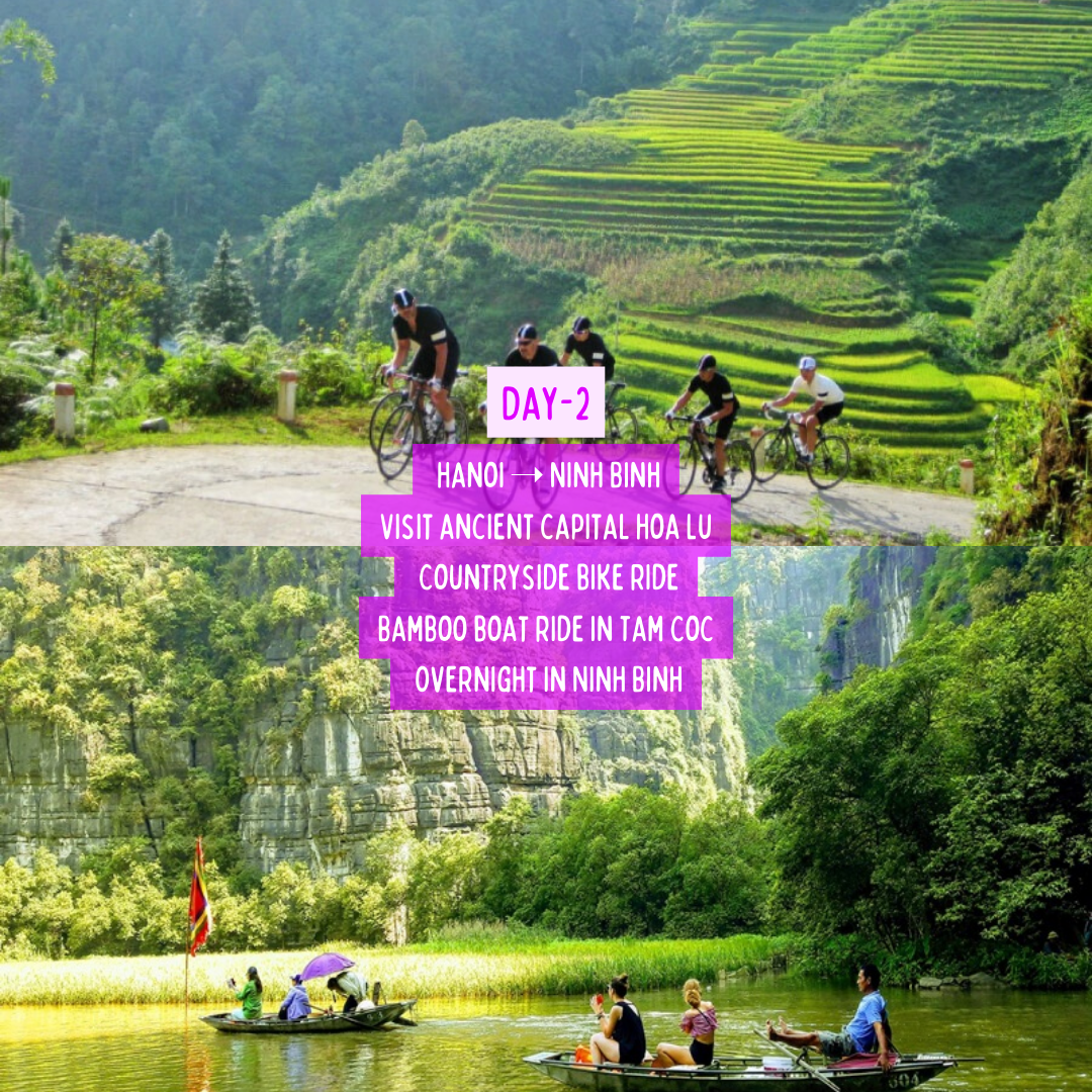 - Hop on a bicycle and ride through the lush countryside, winding past rice fields, peaceful villages, and dramatic limestone formations.